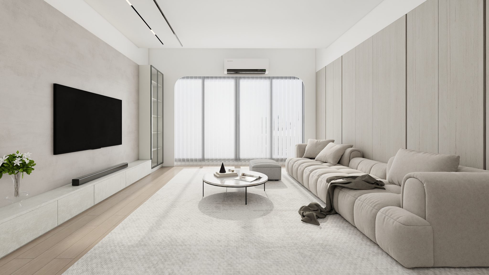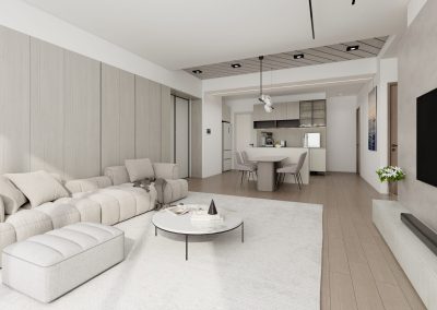 施作內容|鋁框玻璃門、天花板、冷氣包管、窗簾盒、隔間牆、櫃體上封板、電視牆打底、鋁條燈溝、系統家具、水電工程、油漆工程、保護工程