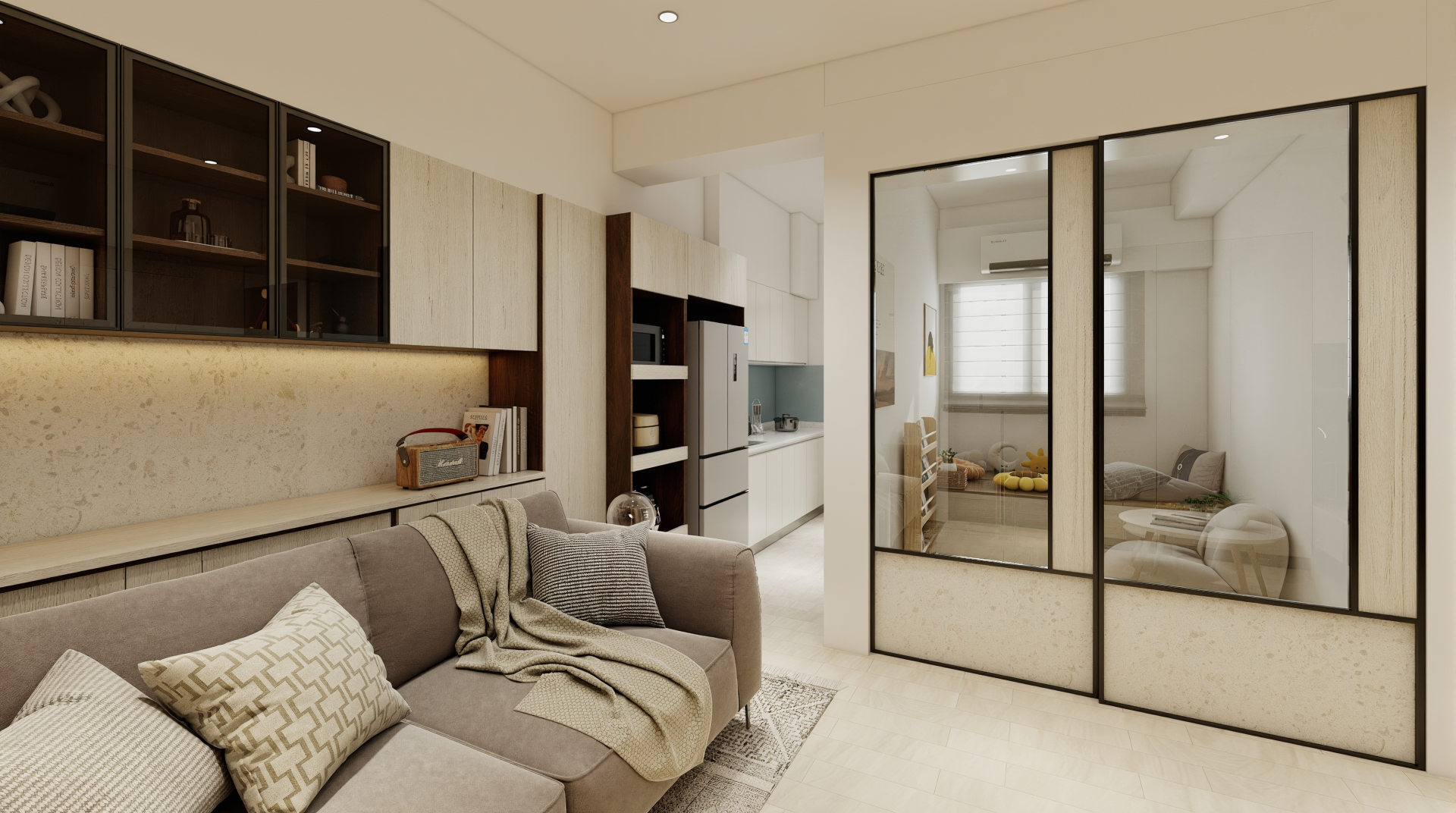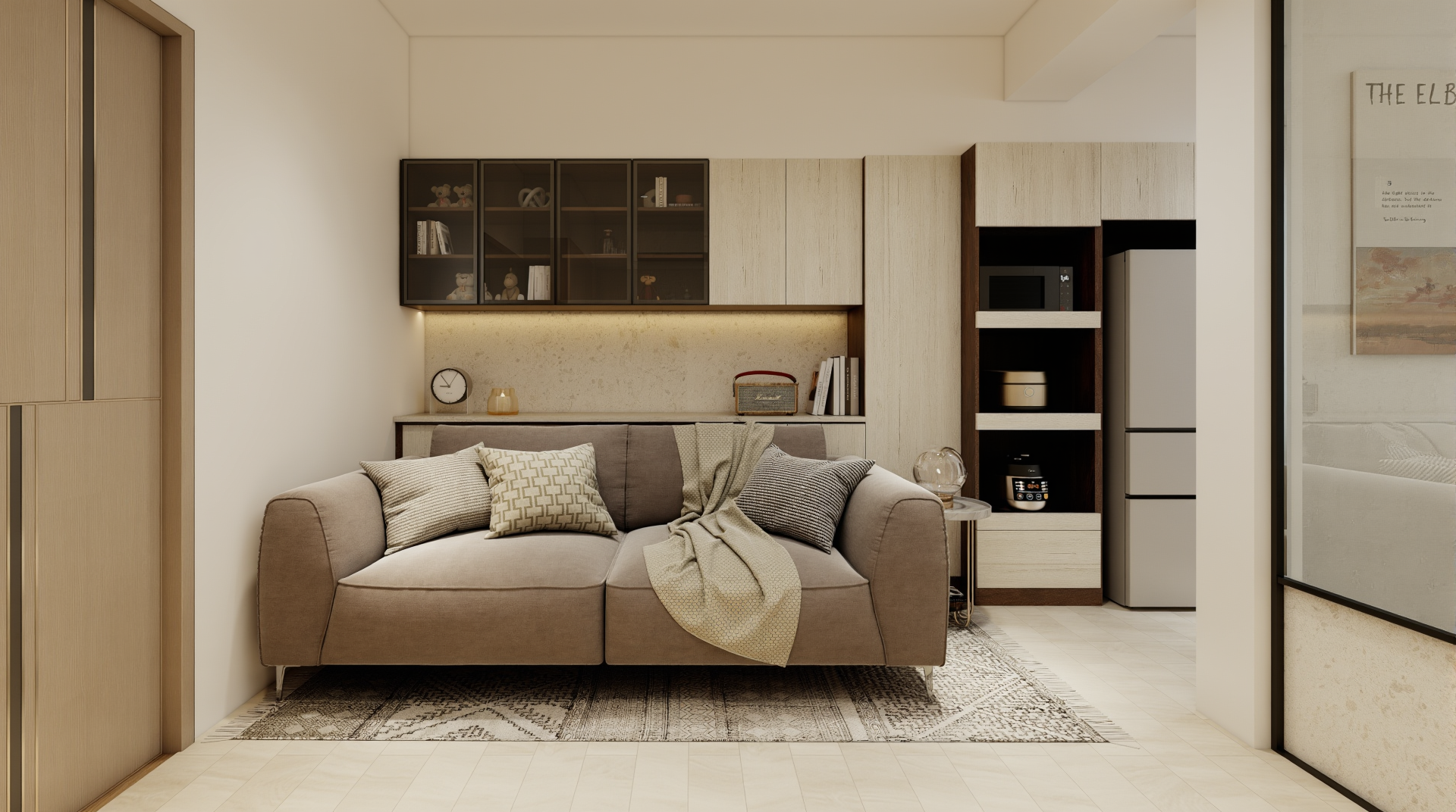 歸仁.世界仁案將系統櫃的優勢發揮到最大,各系統家具相輔相成,既保留最佳空間利用率,又讓小宅成為適宜生活的家,且系統板材耐久耐磨,這樣的完好景象可以維持相當久。