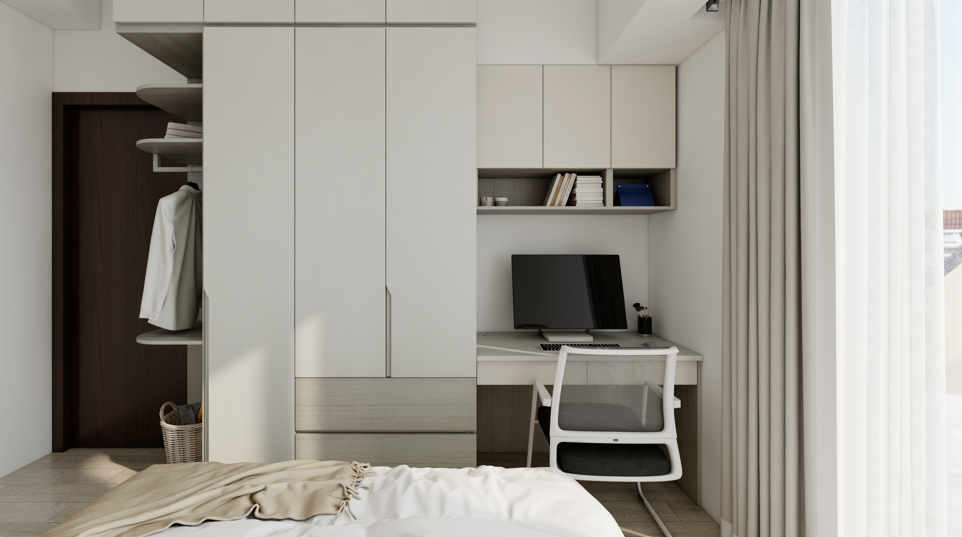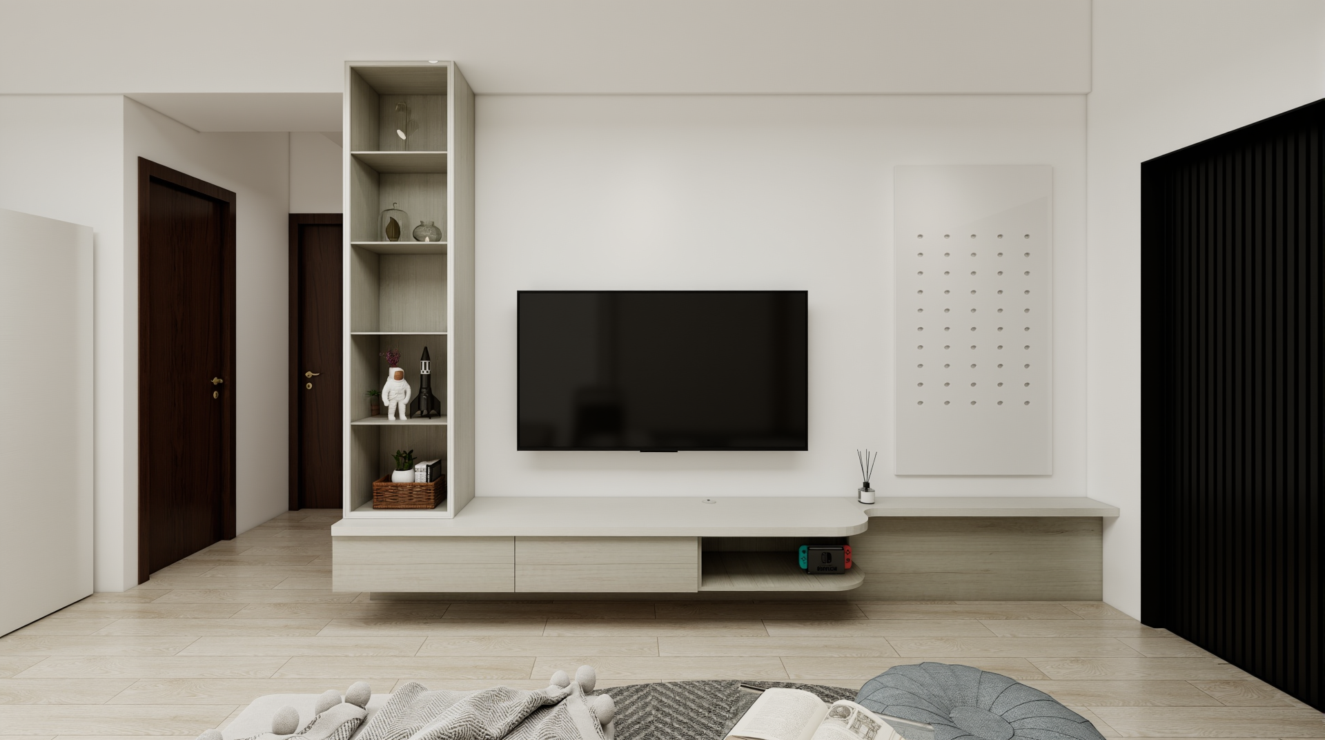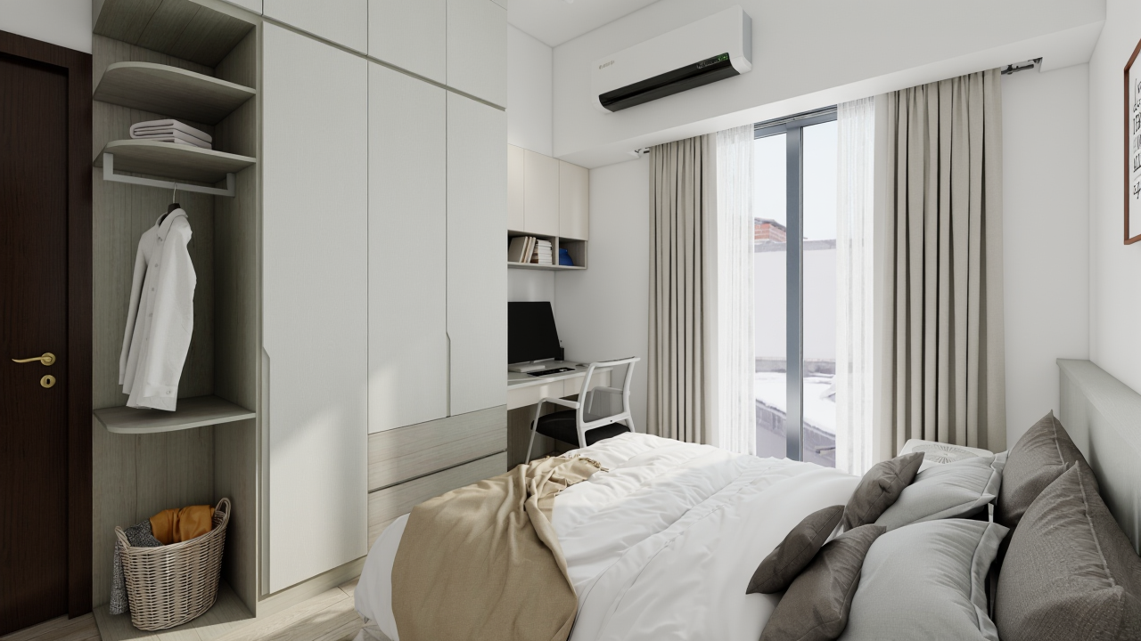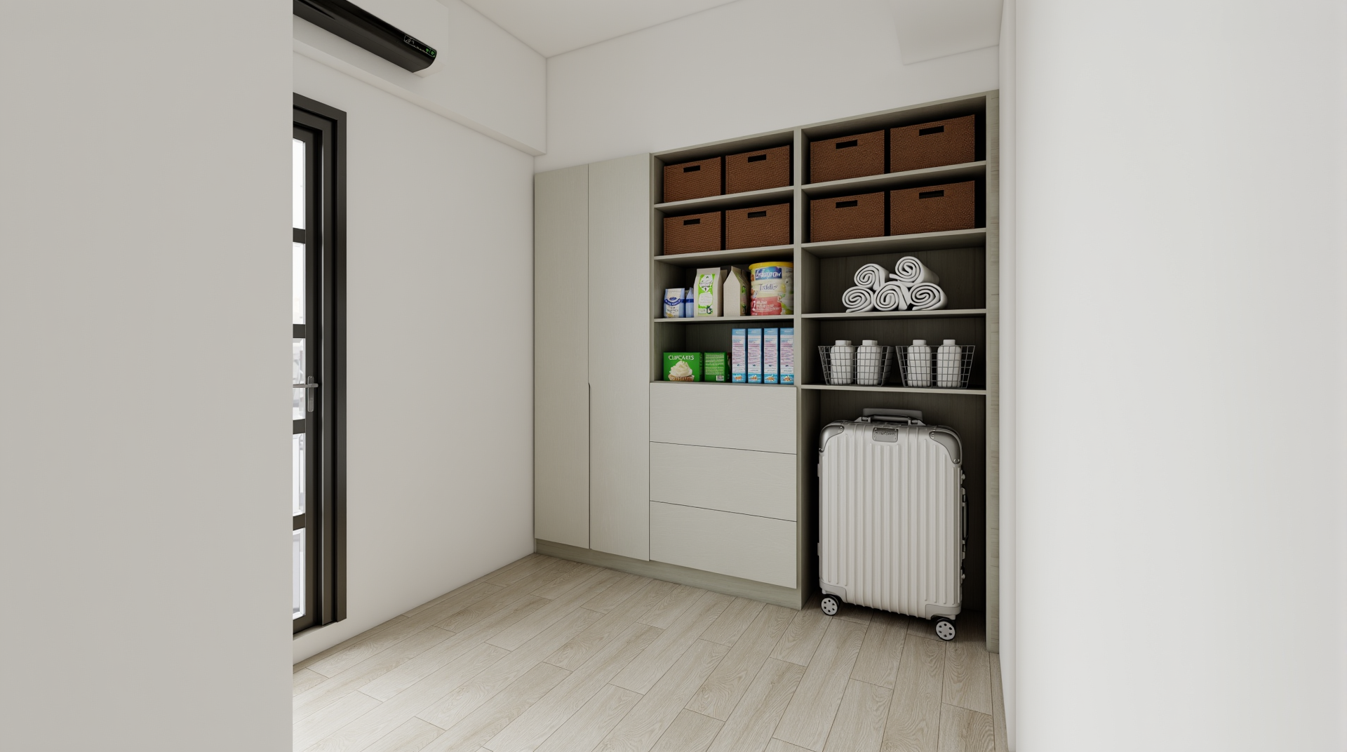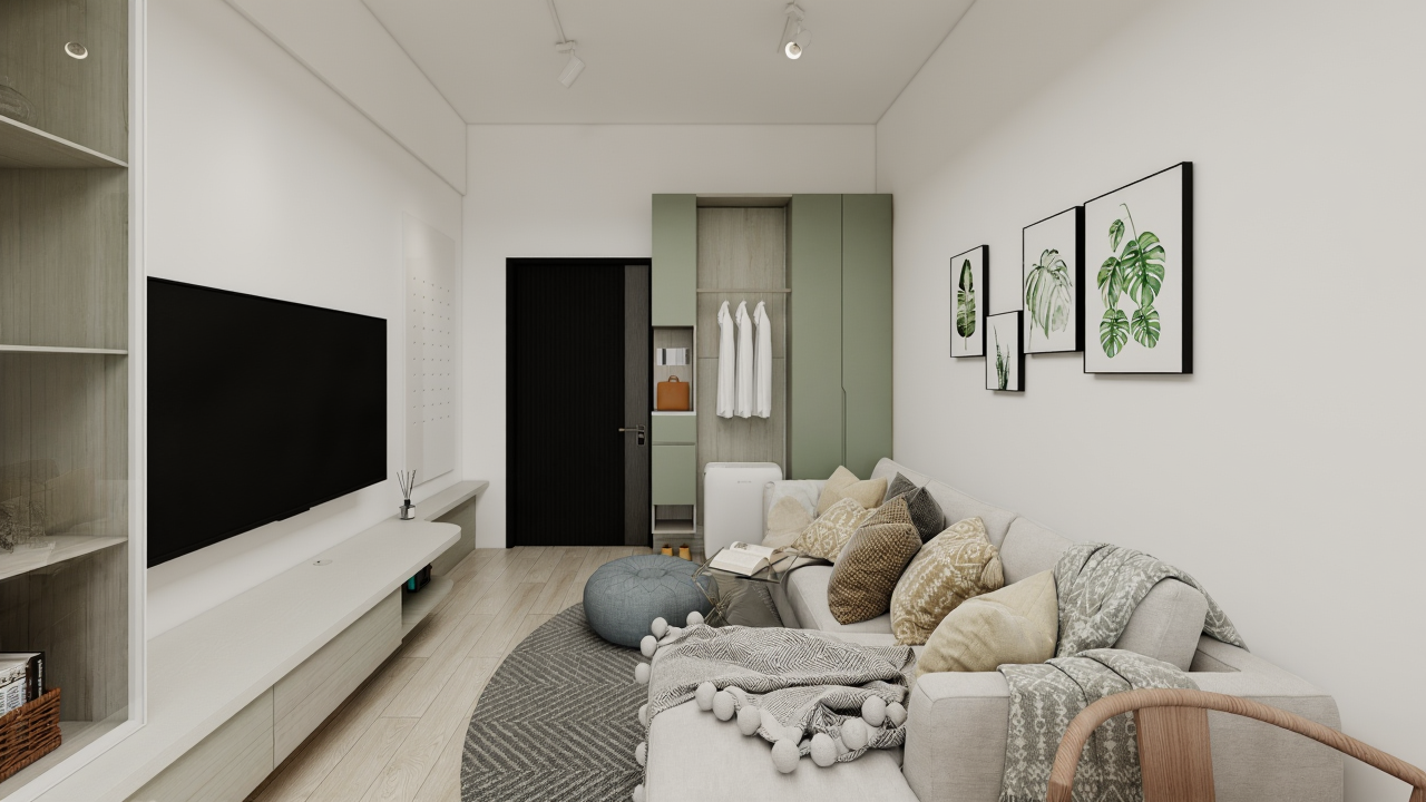 施作內容|櫃體上封板、冷氣包管、窗簾盒、系統家具、水電工程、保護工程、油漆工程